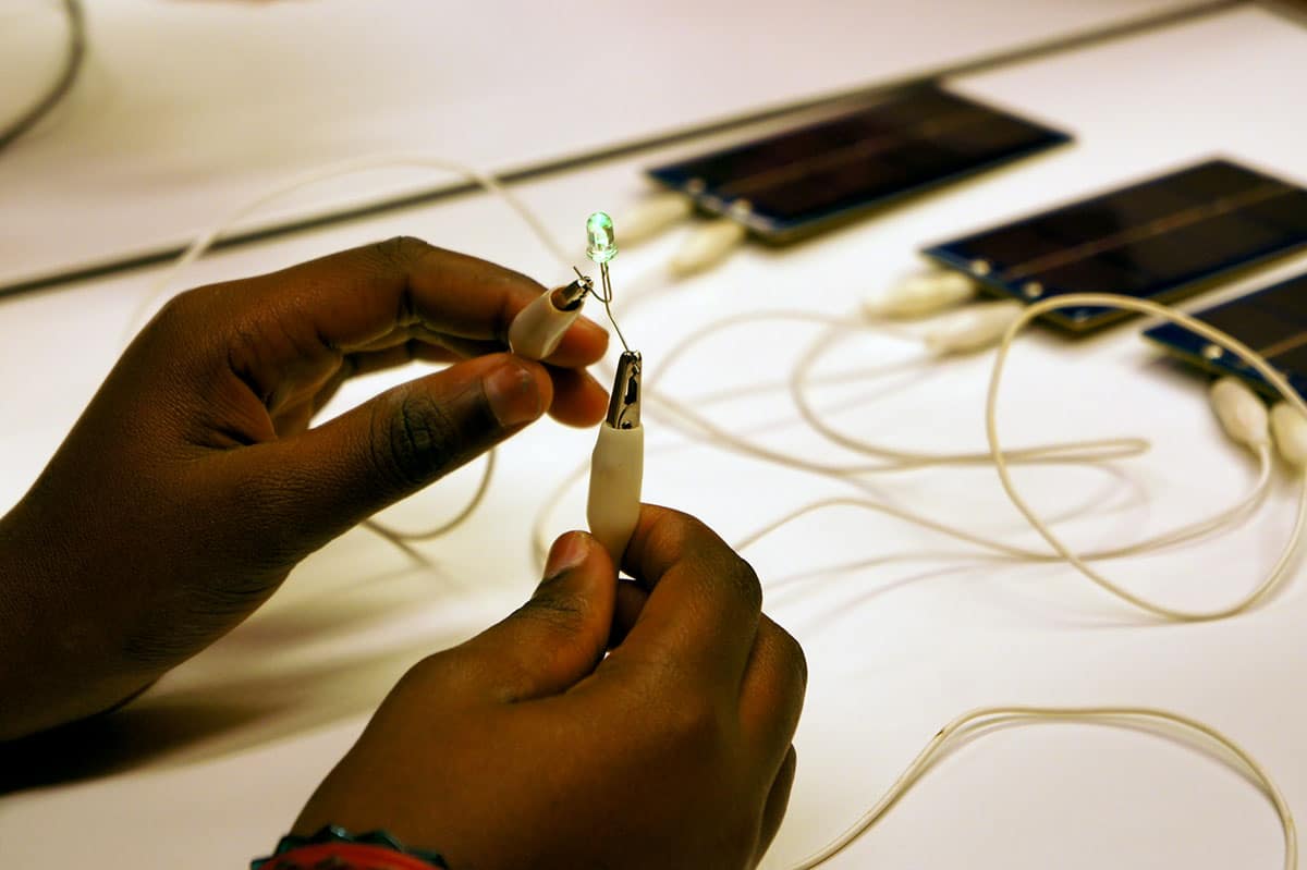 Parmi les différentes formes d'énergies existantes, les élèves s'attardent sur l'énergie électrique. Ils découvrent les propriétés du courant électrique, de l'électricité statique et tentent de produire eux-mêmes de l'électricité en fabriquant des piles ou encore en manipulant des panneaux solaires.