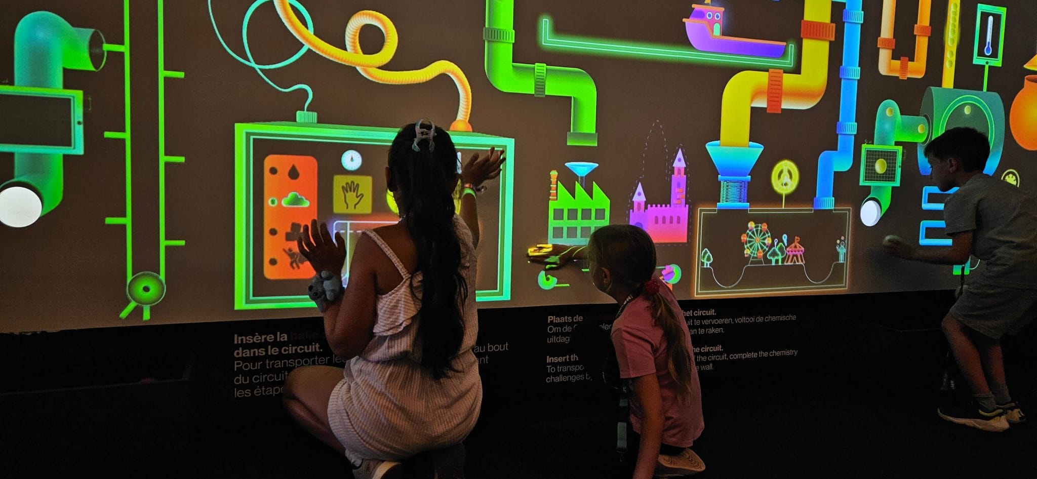 En 2025, SPARKOH! a enrichi son Lab’expo Chimie avec une installation inédite créée en partenariat avec Fluxys : un mur de 8 mètres, divisé en 3 zones de jeux, où petits et grands manipulent des molécules, le méthane, le dihydrogène ou le dioxyde de carbone et déclenchent les réactions et transformations chimiques. Expériences ludiques, interactions tactiles et découverte concrète de la chimie : un dispositif immersif qui connecte science, industrie et innovation belge.