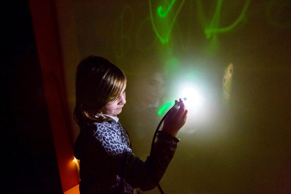 Pourquoi certaines matières laissent-elles passer la lumière et d'autres pas ? Comment se fait-il qu'en mélangeant du vert, du rouge et du bleu, j'obtienne une lumière blanche ? Dans cette zone jeune public, les enfants jouent avec la lumière : autant d'expériences pour s'émerveiller.