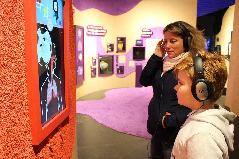 • Le cerveau: comparez votre cerveau avec celui d’un poulpe, d’un rat, d’un cochon, d’une abeille, testez votre mémoire grâce à un jeu de mémorisation, ou, essayez-vous au mur des réflexes.
