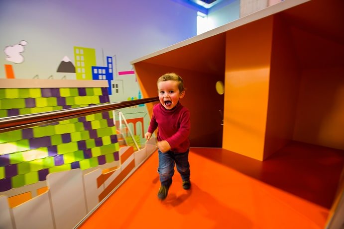 Comme c'est curieux, une ville vue d'en haut ou d'en bas ! Et si on l’aménageait comme il nous plaît ? Dans le quartier archi-chouette, les 3 à 7 ans explorent le monde qui les entoure. Une ville à hauteur d’enfant où ils s’amusent à construire un pont, un igloo, déambulent dans une maison-labyrinthe, découvrent comment la ville était avant et comment elle est ailleurs dans le monde.