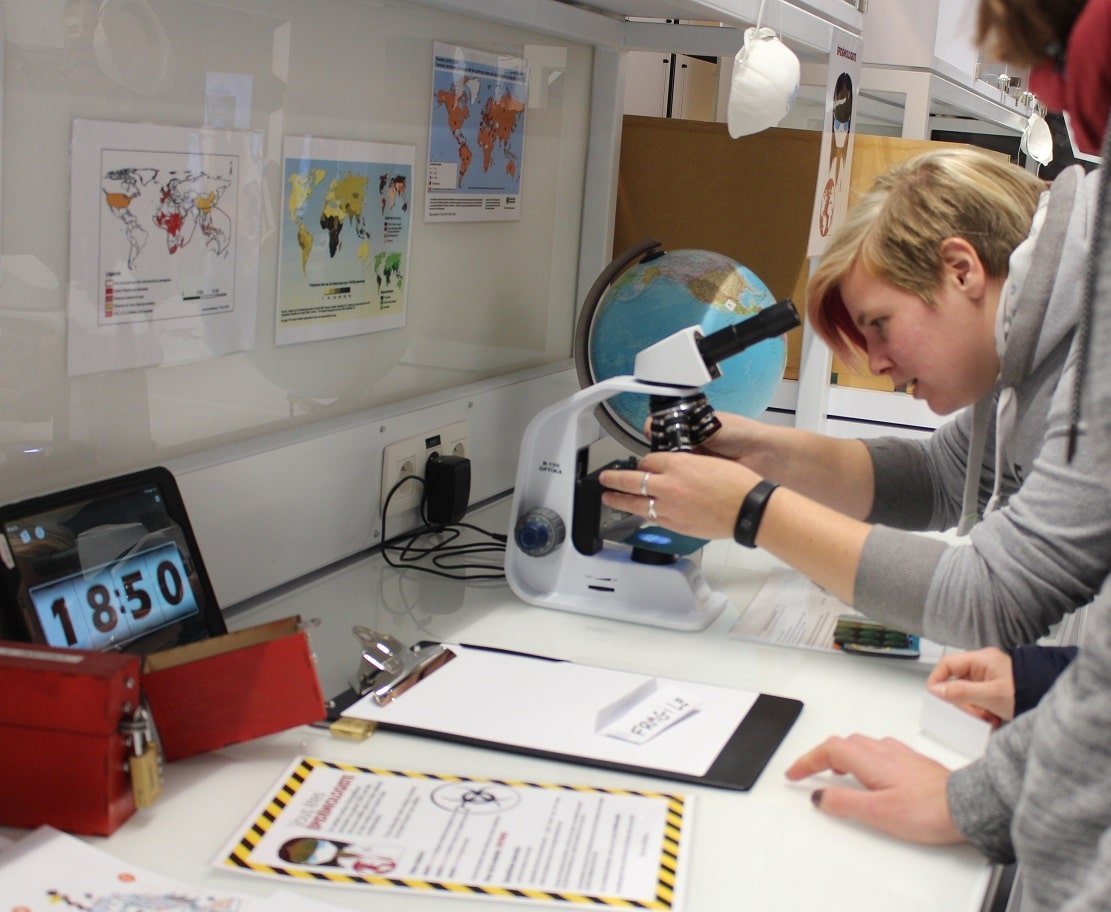 De leerlingen nemen deel aan een unieke oefening van mondelinge expressie: een televisiejournaal maken in een echte televisiestudio.