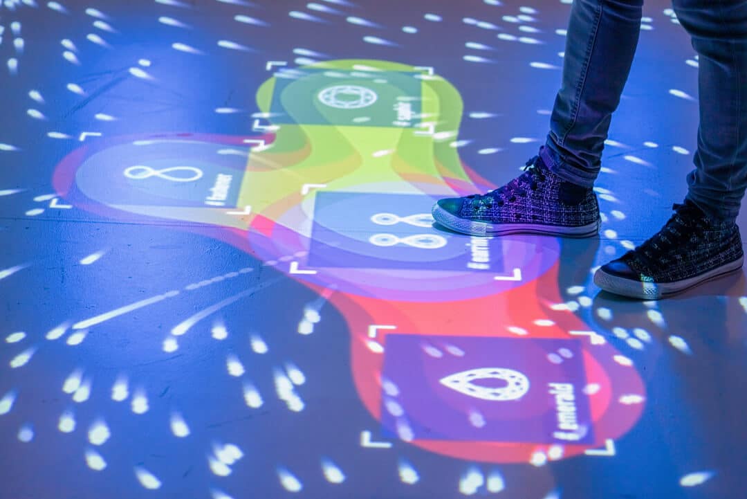 Een apparaat met vloersensoren gekoppeld aan videomapping: deze unieke technologie werd ontwikkeld door het Bergense bedrijf Hovertone.