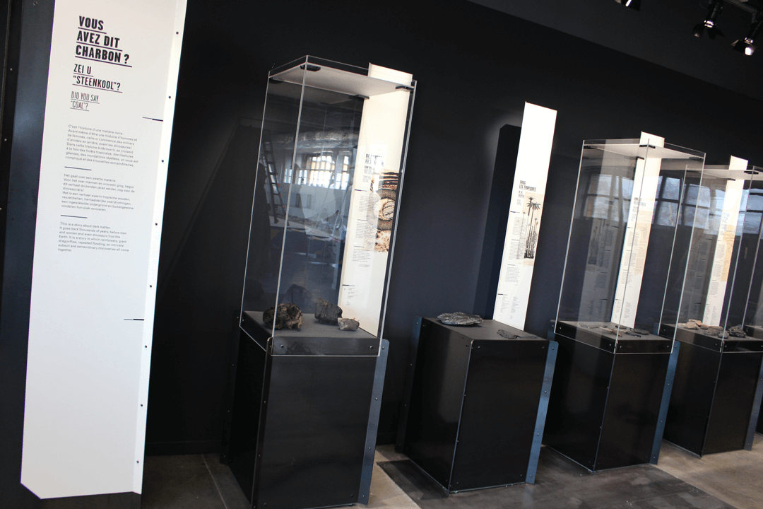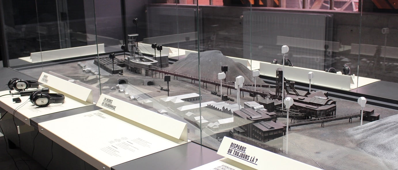 De tentoonstelling komt tot leven waar de steenkool uit de grond werd gehaald: het oude Recept van de steenkoolmijn, met rechtstreeks zicht op de schachtbok!